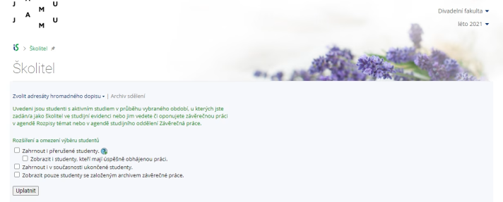 The application will select the subjects for which you are the teacher or subjects related to the evaluation of the final thesis and you are also the supervisor of the thesis.