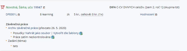Enter the evaluation of the final thesis subject – e.g. “Master’s thesis”, “Graduate project”, etc. via the “Supervisor” application