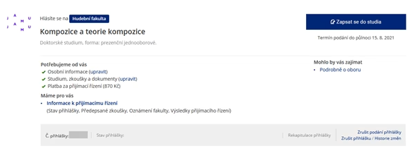 Students who are previous users of IS JAMU and have created an application under their IS account, enter their application after logging in to IS JAMU:
