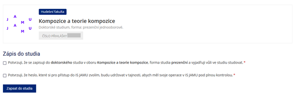 Jakmile tato pole potvrdíte a kliknete na tlačítko “Zapsat do studia”, dojde na další stránce k potvrzení Vašeho zápisu